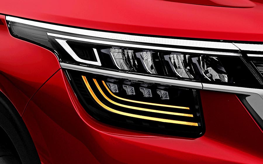Hệ thống đèn cos pha với hiệu ứng ánh sáng LED độc đáo bắt mắt. Cụm đèn trước sử dụng công nghệ full LED và đèn định vị “Heart – Beat” độc đáo. Cụm đèn sương mù hình khối băng kết hợp với ốp cản trước mang đến dáng vẻ mạnh mẽ, hiện đại và cuốn hút cho Kia Seltos.