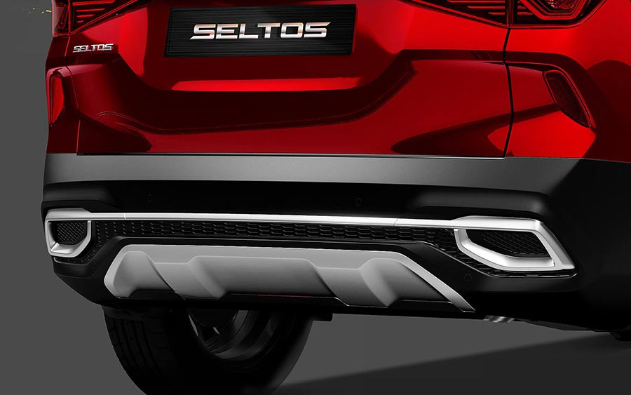 Phía sau xe nổi bật lên với thiết kế hình khối tạo nên sự cứng cáp với ống xả kép mạ Chrome. Để tăng tính vững chắc và cân đối phía sau xe, xe còn trang bị dải đèn LED bắt mắt với hiệu ứng ánh sáng theo phương ngang, liền mạch với đường chỉ mạ chrome, tôn lên vẻ đẹp năng động và hiện đại cho Kia Seltos.